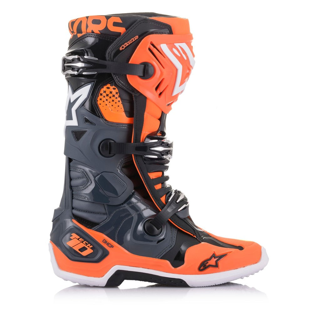 The Alpinestars Tech 10 has had a makeover! Building upon the success of the previous model, the new Tech 10 has taken an already great motocross boot and turned it into something incredible. Working closely with the Alpinestars Medical Unit over the past few years, the Alpinestars R&D department spent countless hours, endless resources, and non-stop development and testing in redesigning and perfecting what was already the leading motocross boot in the market. Shaving around 135g per boot (size 10) compared to the previous model Tech 10, the all-new 10's have a lightweight feel that will have you jumping for joy.